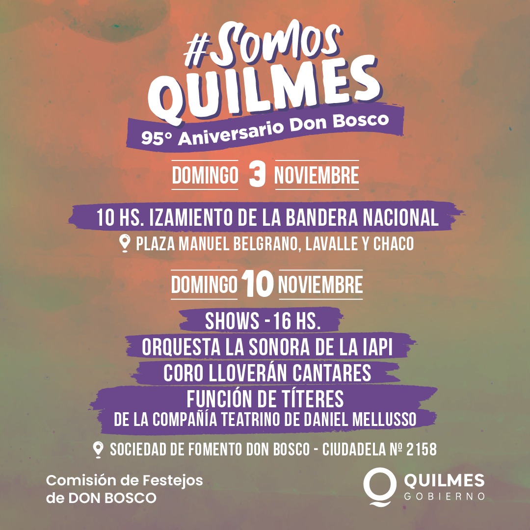 El Municipio informa que, el domingo, la Comisión de Festejos de las Instituciones de la Ciudad de Don Bosco invita al acto conmemorativo del 95º aniversario.