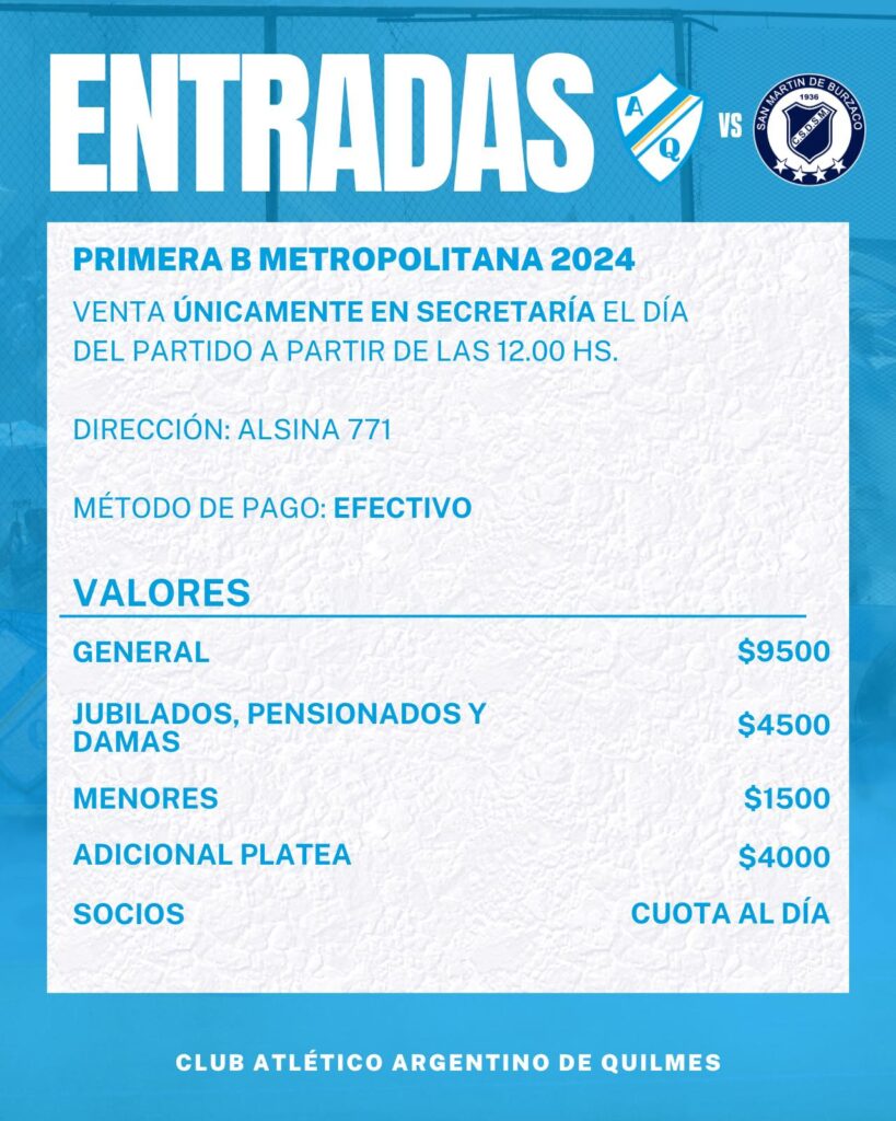 Argentino de Quilmes juega de local este domingo a las 13:10 ante San Martín. El partido ante el equipo de Burzaco es harto importante para las aspiraciones quilmeñas. El cotejo será arbitrado por Sebastián Bresba y será posible de ver a través de TyC Sports Play.