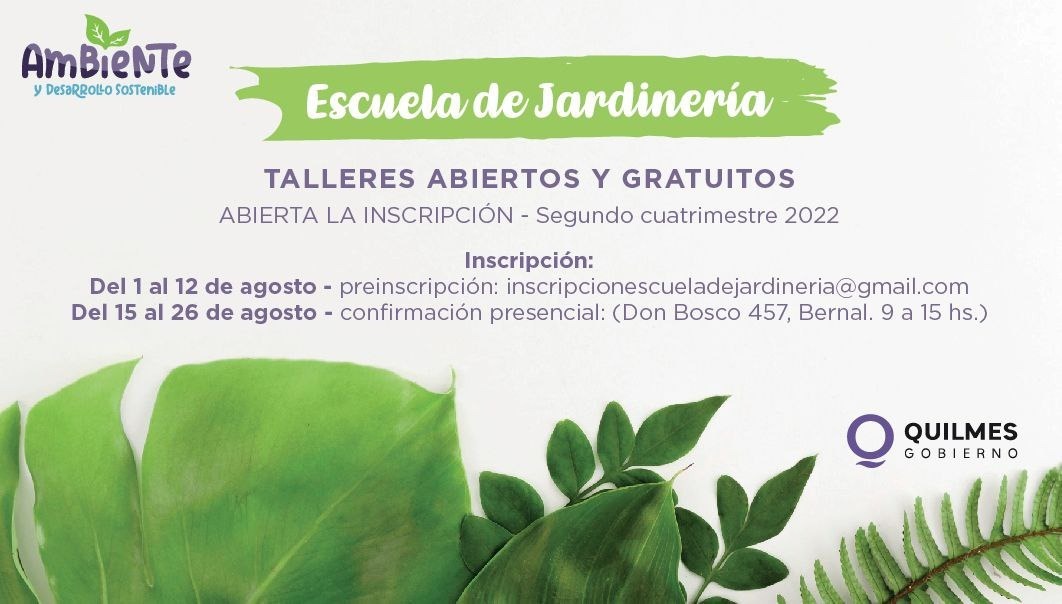 La confirmación será presencial del 15 al 26 de agosto, en la Escuela de Jardinería. El único requisito es ser mayor de 18 años y residir en Quilmes. No es necesario contar con conocimiento.