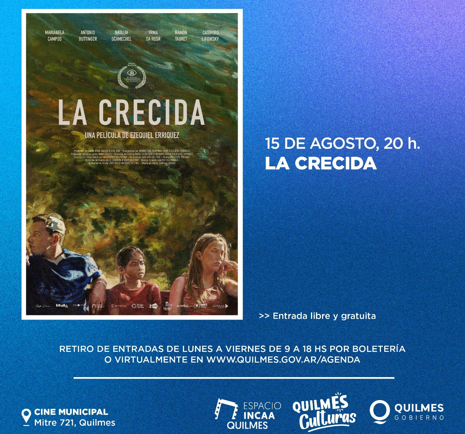 Ambas a las 20, en el Espacio INCAA Quilmes, con sede es el Teatro Municipal, Mitre 721, podrá verse La Crecida. Un film cuyo guión y dirección es de Ezequiel Erríquez, ganador del Festival Latinoamericano de Medioambiente (2014). Las entradas se retiran de 9 a 18 por boletería o virtual aquí.