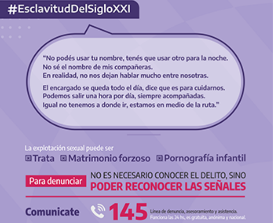 Las víctimas de explotación infantil oscilaban entre 10 y 13 años. Las rescatadas de explotación sexual oscilaban entre los 14 a 44 años, todas argentinas.