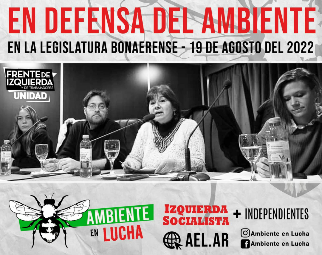 Este 19 de agosto, y en audiencia pública en la Legislatura bonaerense, el frente Ambiente en Lucha y el Frente de Izquierda Unidad, FIT U, convocante de la audiencia, con la legisladora Graciela Calderón, referente de Izquierda Socialista de La Matanza, y Francisco Ayala, referente de Ambiente en Lucha de Lomas, redactaron una resolución de lo debatido.