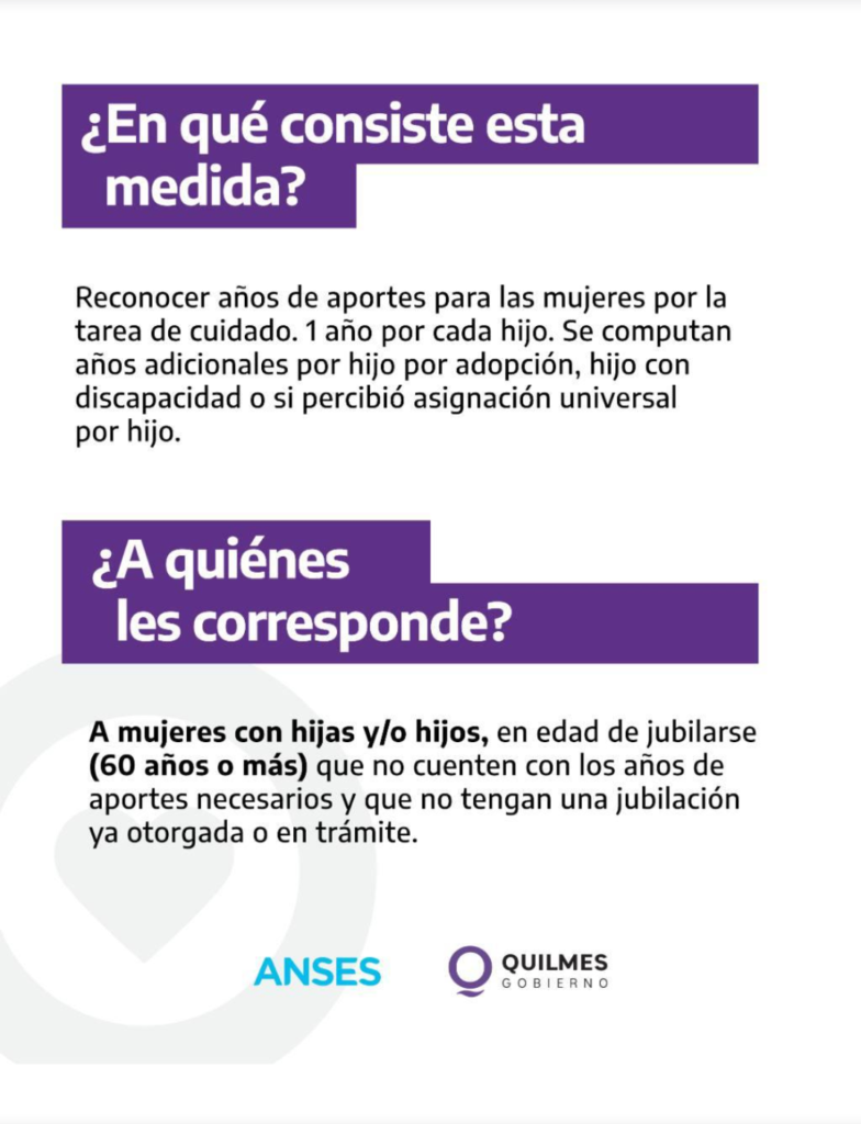Además de acercarse al polideportivo para lograr la gestión, podrán acceder al trámite hay que sacar turno en la página de ANSES y deben ser mujeres con hijas y/o hijos, en edad de jubilarse (60 años o más) que no cuenten con los años de aportes necesarios y que no cuenten con una jubilación ya otorgada o en trámite.