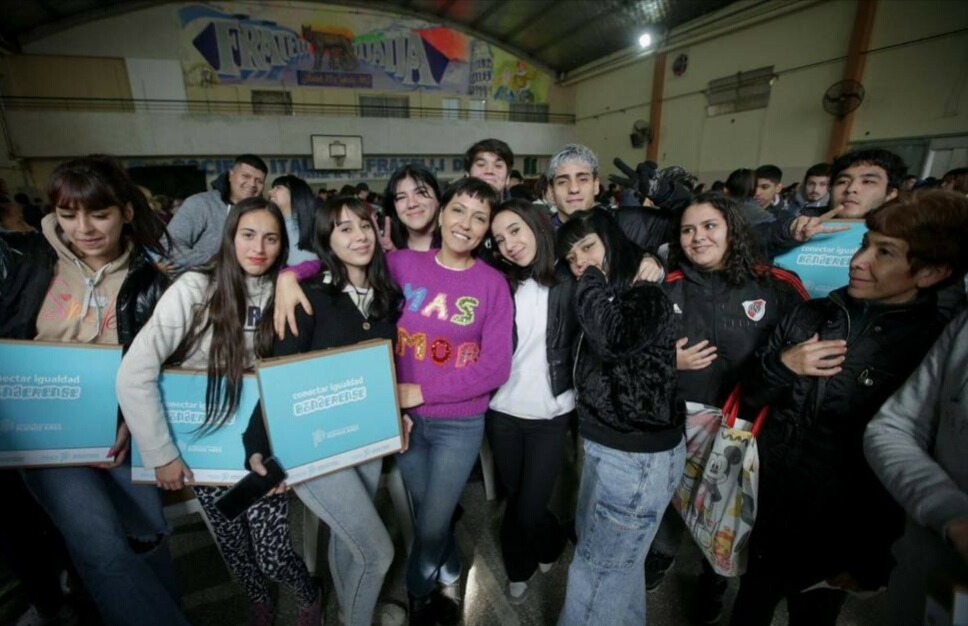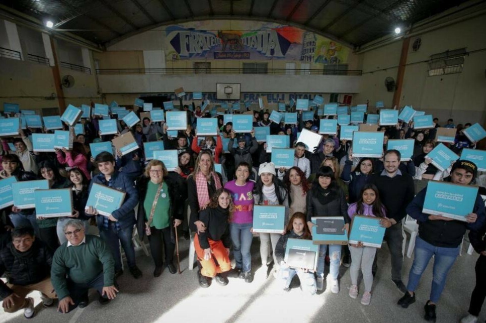 «Estas computadoras son importantes para la actualidad, pero también para el futuro. Queremos que las tengan en sus trayectorias educativas, terminando la secundaria y continuando un terciario o estudios universitarios. En 2010 Cristina pensó este programa y lo llevó adelante hasta que en 2015, con el cambio de gobierno, se abandonó. Y en 2016, gobernaba Macri, cuando los estudiantes organizados fueron a reclamar sus computadoras al Ministerio de Educación de la Nación, y lo que recibieron fue represión. Hoy, gracias a la decisión del gobernador Axel Kicillof y al trabajo articulado que tenemos, estamos otorgando este derecho. Ustedes tienen que cuidarlo».