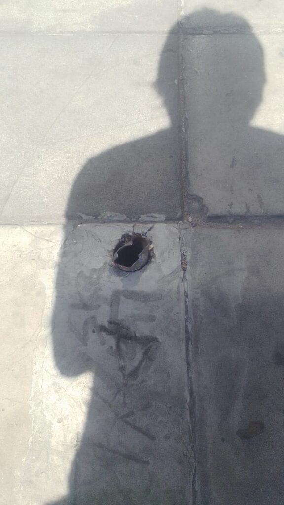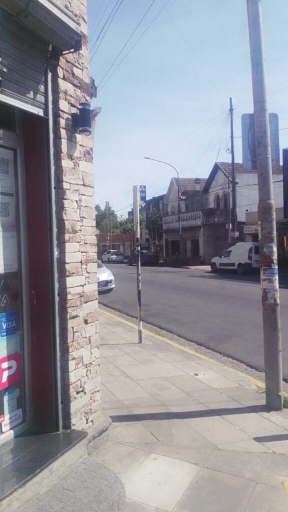 Este miércoles 15, ya no estaba. No parece que hubiese sido arrancada por el choque de algún vehículo (que no se ha reportado) y hay otro caño de parada de micros, intacto.