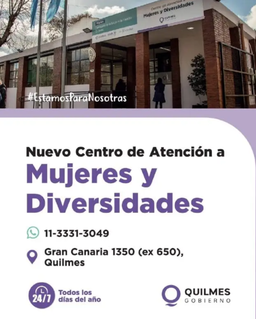 📣 En #Quilmes contamos con un nuevo Centro de Atención a Mujeres y Diversidades en la calle Gran Canaria 1350 y Tres de Febrero, en Quilmes Este.