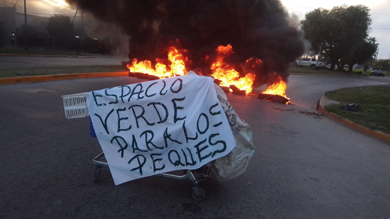 Como ya informara este CIQ, los vecinos se oponen a perder un espacio verde que vienen cuidando desde hace décadas, por un proyecto de construcción de viviendas sociales que el Municipio planea realizar, donde instalaron una canchita de fútbol y plantaron árboles, incluso lucharon contra usurpación y que se convierta en basural. Gran irritación causó que el predio está custodiado por policías munidos de armas largas, que amedrentan al barrio, y fue alambrado por una empresa privada, permaneciendo dentro algunos vecinos como protesta