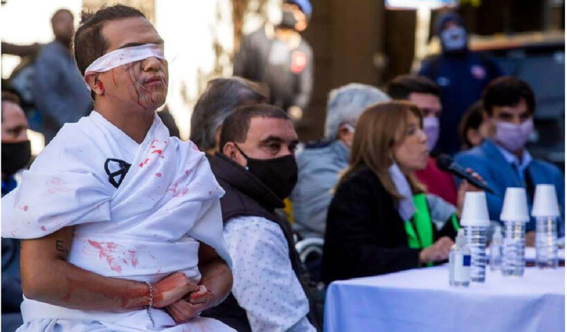 Brian Farias, del Movimiento Evita, representó a una justicia ciega, harapienta y moribunda. La Asamblea Permanente por los Derechos Humanos (APDH) Regional Conurbano Sur informó…