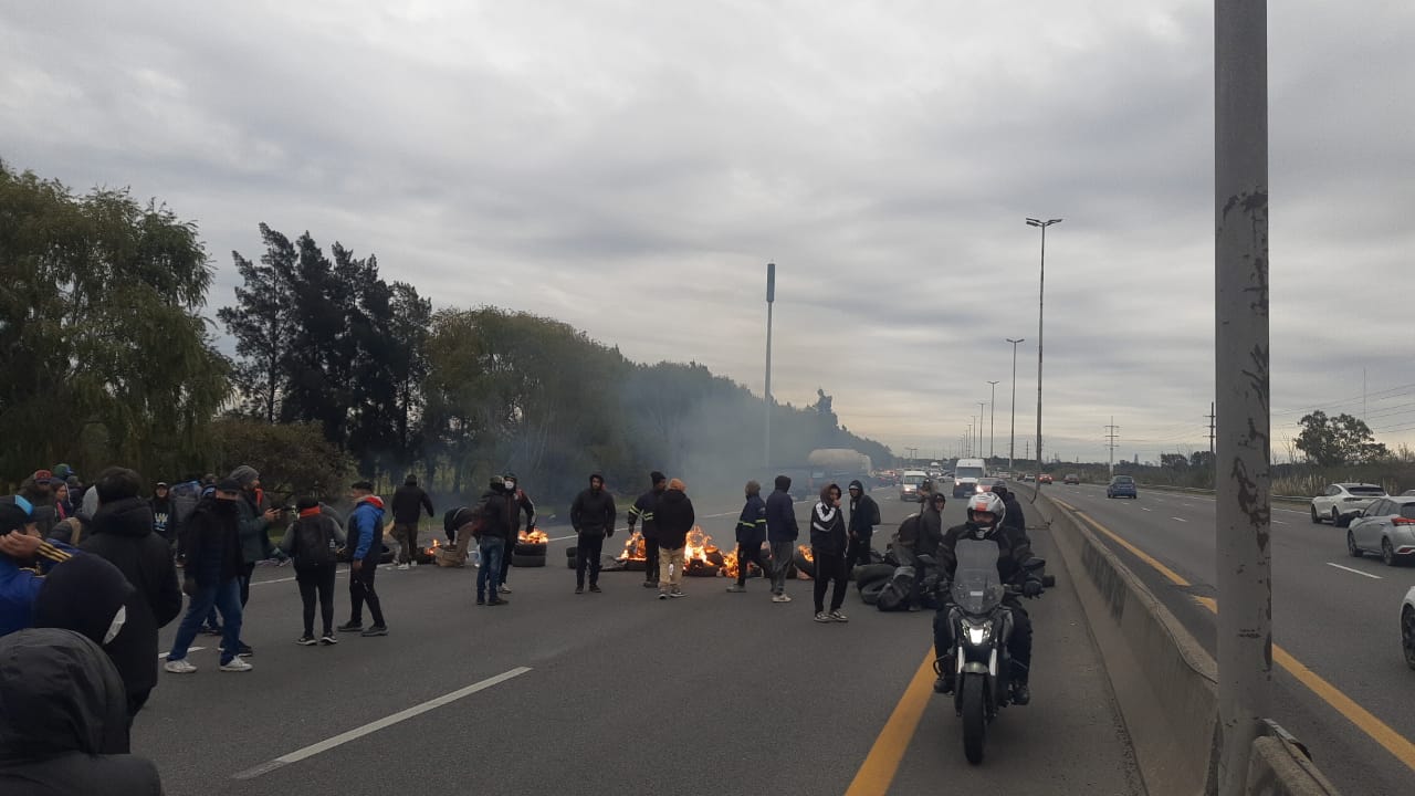 Organizaciones sociales cortan la autopista BA-La Plata, en la zona de Bernal, a la altura de la calle Lomas de Zamora.