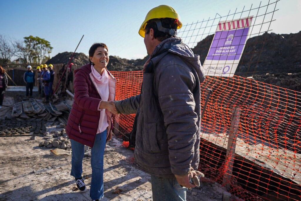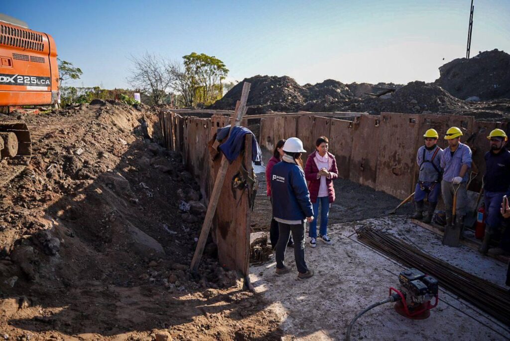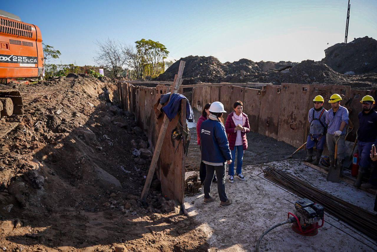 Mayra Mendoza supervisó el desarrollo de la obra del colector pluvial que recorre la avenida Otamendi, desde Lafayette hasta el Río de la Plata y luego visitó la Escuela 79 y el Jardín de Infantes 917, de La Ribera, donde conversó con directivos y docentes sobre los proyectos hídricos para evitar las inundaciones.