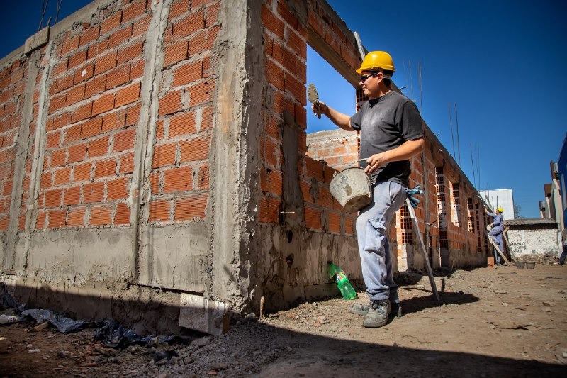 El Municipio, con el Gobierno Nacional, avanza con la construcción de once nuevas viviendas sobre la calle Sargento Cabral, entre Caviglia y Chubut, en el barrio Azul, de Don Bosco, financiadas mediante el programa «Casa Propia», del Ministerio de Desarrollo Territorial y Hábitat.