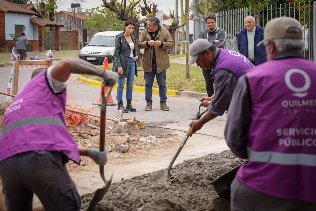 Sobre las tareas de bacheo, el funcionario detalló: «Tenemos varios frentes de obra, como el que recorrimos hoy, en Ayolas y Madres de Plaza de Mayo, donde se hizo el desmonte, la compactación de suelo y hoy volcamos el hormigón H30.Otro punto donde estamos trabajando es en Marconi y Ayolas. A esto se suma la cuadrilla de carpeta asfáltica, que hace bacheo en Quilmes Centro. Y tenemos otra cuadrilla más, con camiónvolcador, que trabaja en la zona de Calchaquí, Mosconi, Pellegrini, Rodolfo López, en Quilmes Oeste».