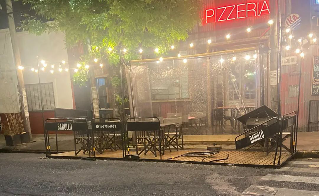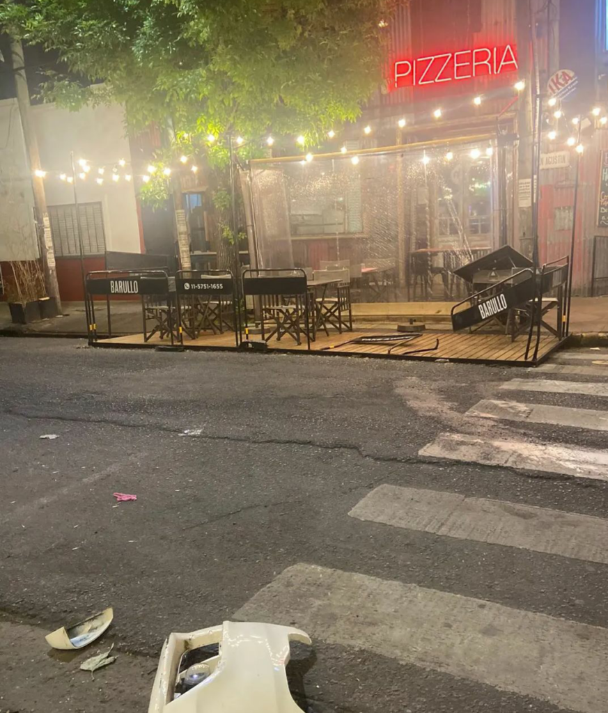 En la noche del martes, personal policial se acercó a identificar a dos personas que cenaban en un bar de Brown y 9 de Julio que escaparon en un Audi blanco, llevándose por delante y destrozando el deck (Qué barullo!).