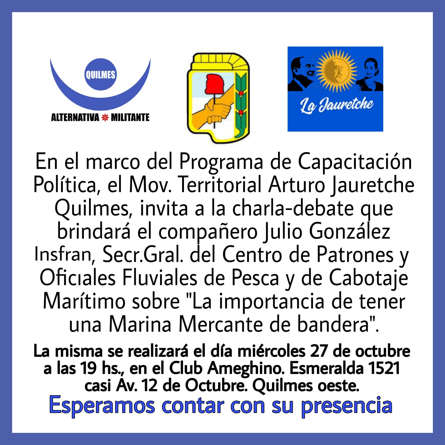 Jorge Barrionuevo recibirá al secretario general del Centro de Patrones y Oficiales Fluviales, de Pesca y de Cabotaje Marítimo, Julio González Insfran.
