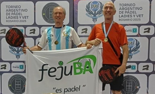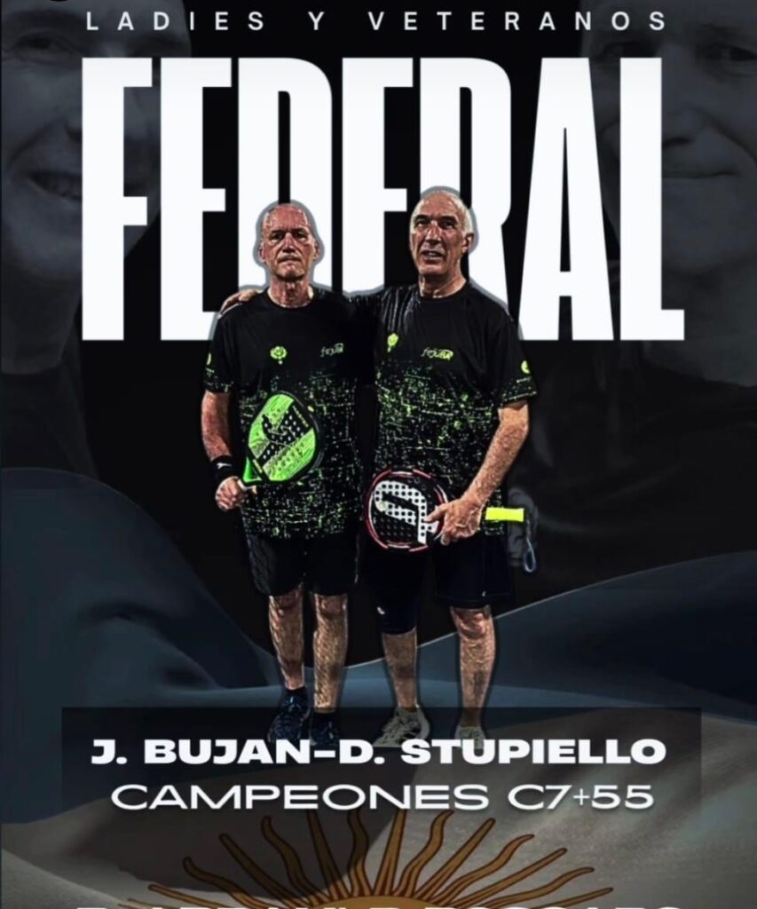 Jorge Edgar Buján se consagró campeón nacional de Paddle categoría +55 c7, junto a su compañero David Stupiello, en el Torneo Argentino de Padel Veteranos 2025, en Rosario.