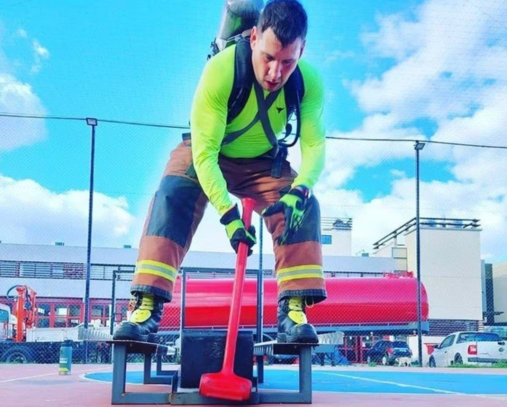 En este certamen tienen que realizar diversos ejercicios de fuerza en determinados recorridos, en plena simulación de una emergencia, en el menor tiempo posible y portando no sólo el pesado equipamiento sino que también deben, en algún ejercicio, cargar con mas elementos o hasta muñecos del tamaño y el peso de un adulto.