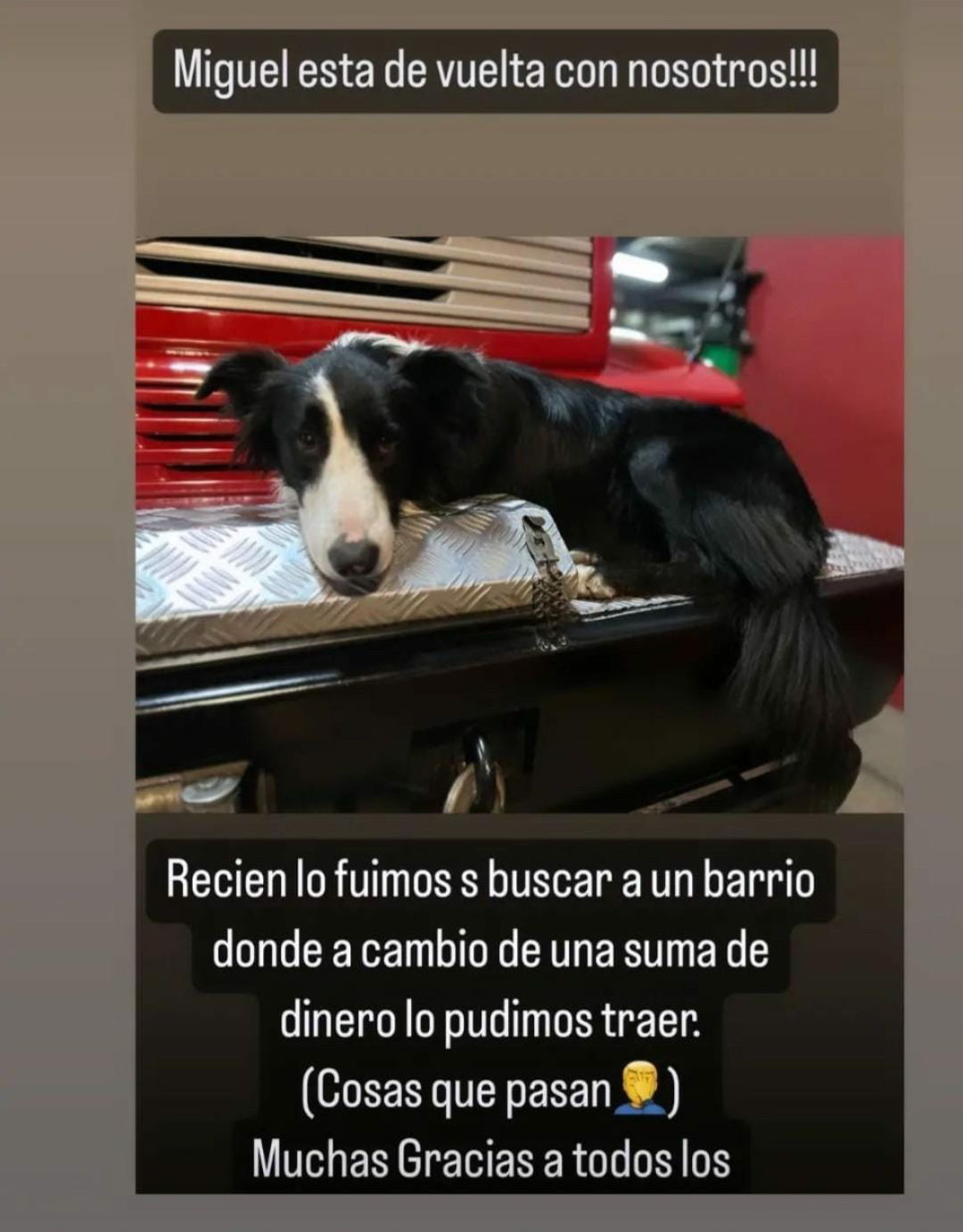 El jefe de Bomberos, Emilio Restucci, se comunicó con este CIQ para dar la novedad: ¡Miguel ya está con ellos! Comprobaron con las cámaras del municipio que se encontraba «secuestrado» en el barrio El Monte.
