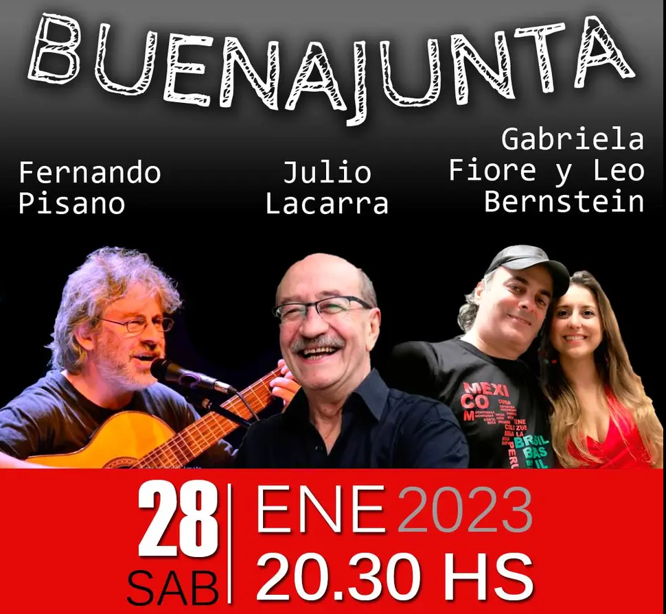 Luego de unos pocos días de receso de verano, el Club Mitre inicia un nuevo año de actividades proponiendo a la comunidad un encuentro con grandes y entrañables artistas. Serán Fernando Pisano y Julio Lacarra, junto a Leo Bernstein y Gabriela Fiore, quienes abran el escenario de 2023 con el espectáculo “Buenajunta”.