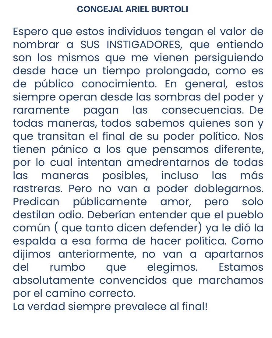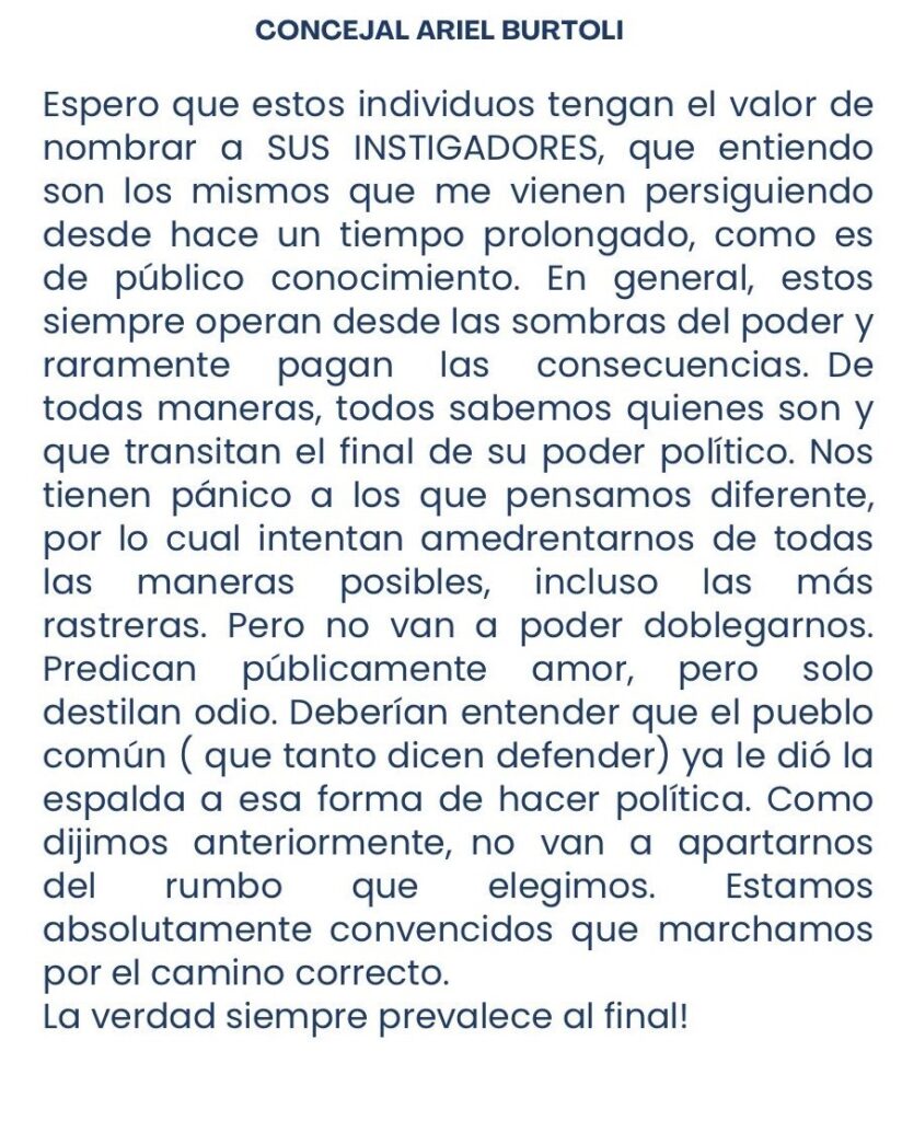 De ello dio cuenta un comunicado que fuentes cercanas al edil tomaron de sus redes y compartieron aquí: