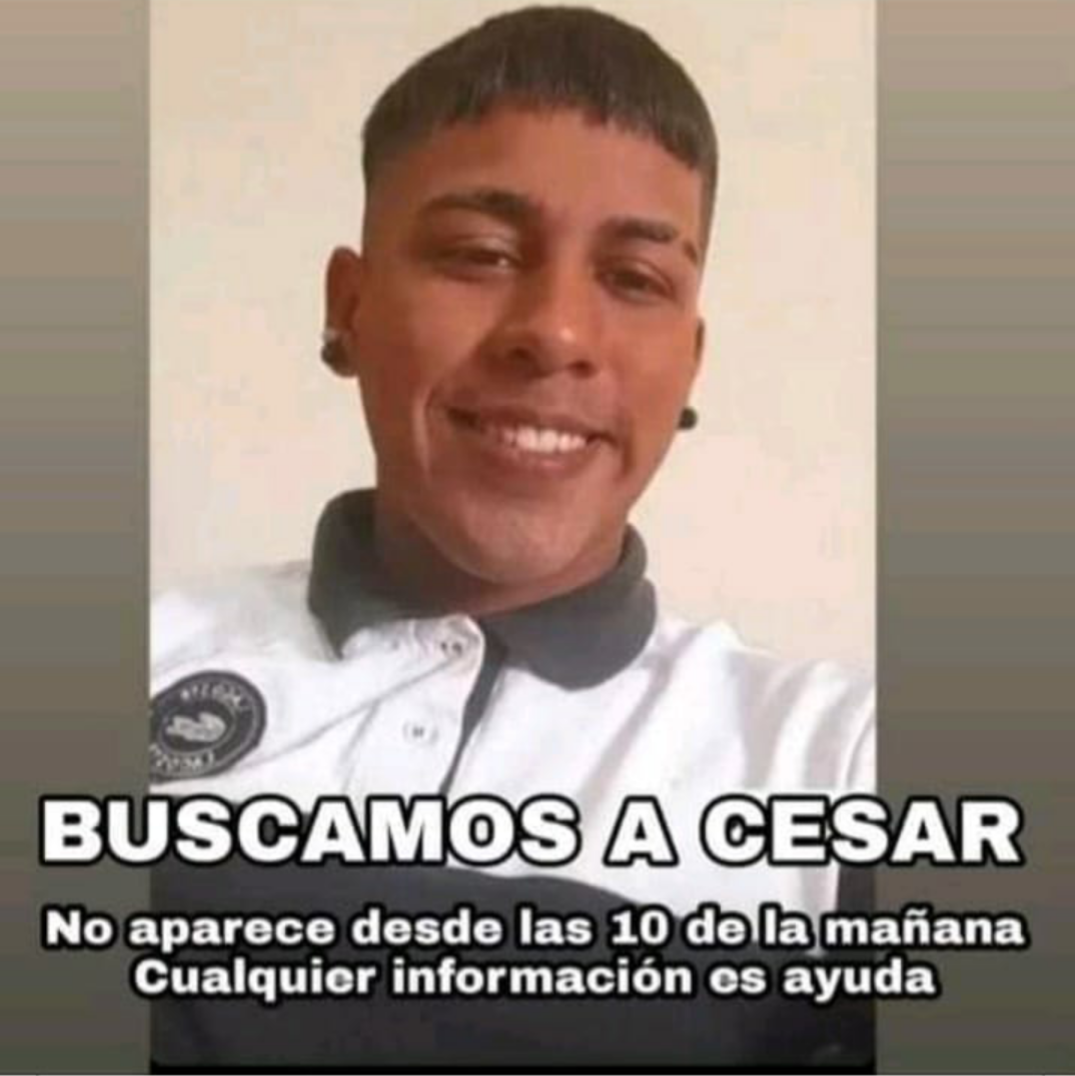 Desde el miércoles a la mañana se está buscando a César, o Gabi. Es un joven vecino del Barrio Naval al que sus amigos dijeron haber visto en la tosquera lindante con autopista, a la altura de la calle Mendoza, en Ezpeleta.