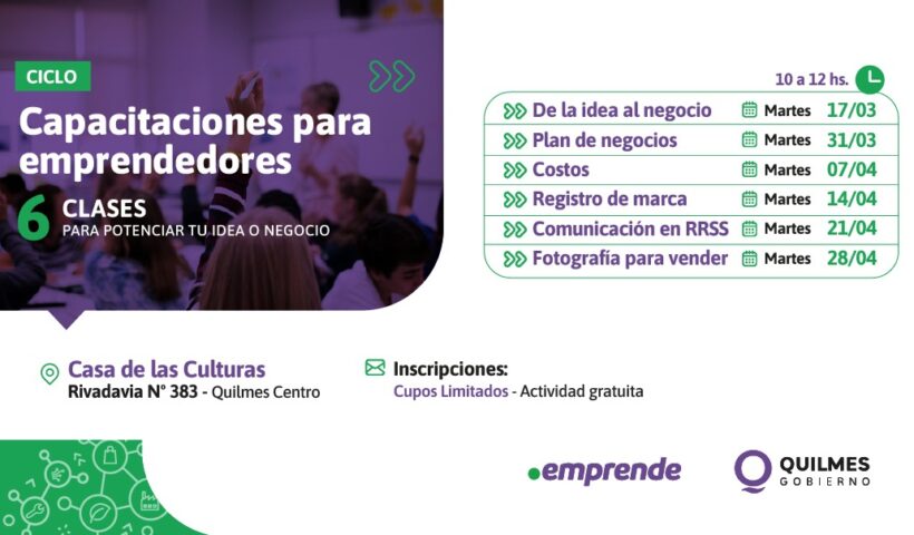 Gratis: 6 clases, cupos limitados Comienza el Ciclo de Capacitaciones para Emprendedores, que la Comuna ofrece de manera gratuita a quienes deseen ampliar sus conocimientos…