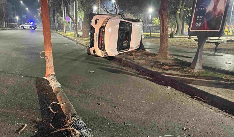En esta medianoche, dos vehículos chocaron en Vicente López y Pellegrini, por lo que una Nissan blanca terminó volcada sobre la plaza Aristóbulo del Valle.…