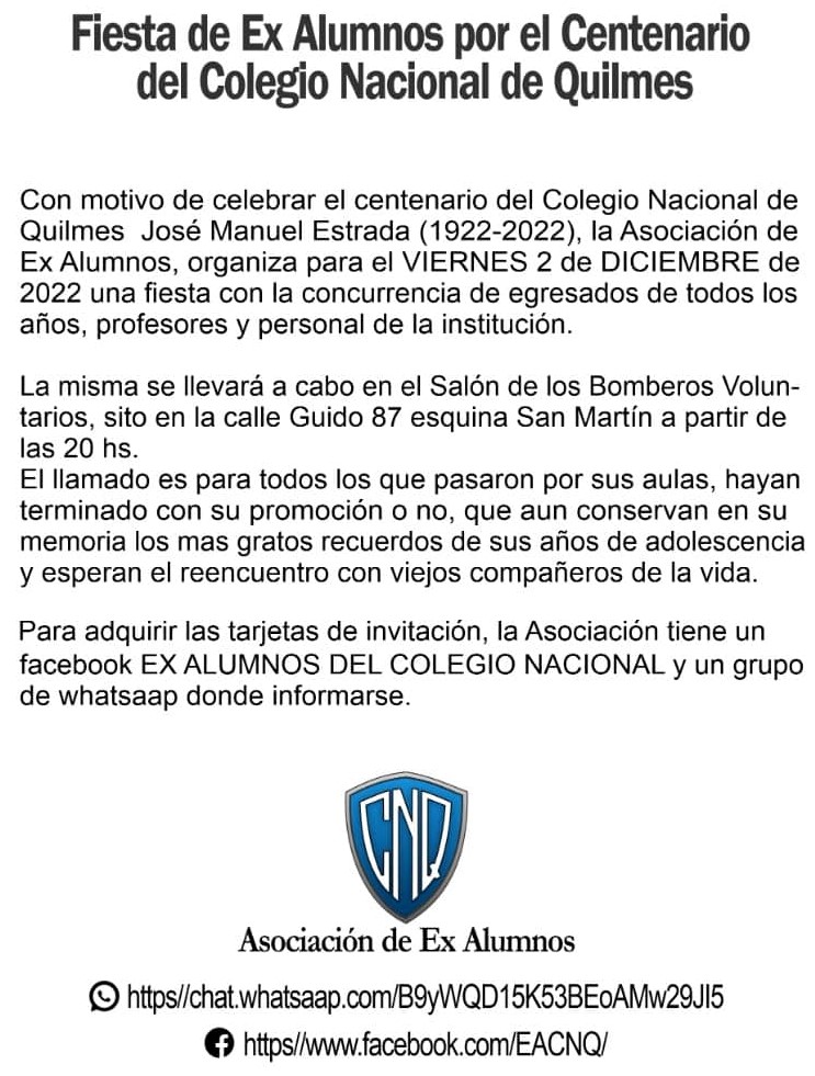 Cultura/Educ. Quilmes Este CENTENARIO DEL COLEGIO NACIONAL Alberto Moya 24 de octubre de 2022 No hay comentarios