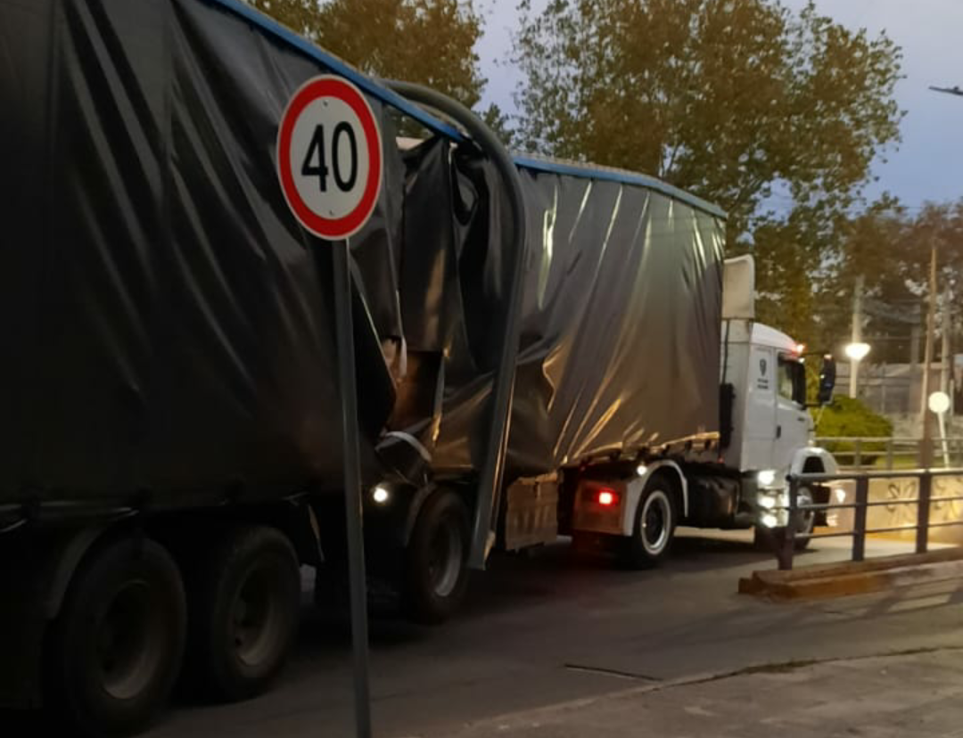 18.35: Se está esperando una grúa que remueva el caño caído sobre el camión.