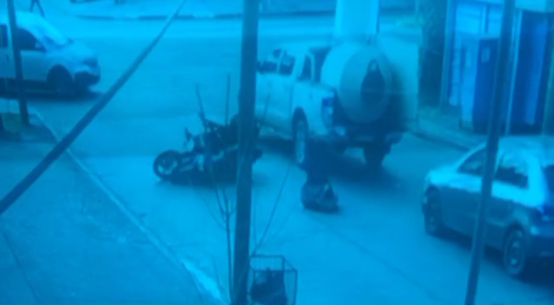 Un insólito choque entre dos motos, sin mayores consecuencias, se produjo este sábado a mediodía en Dorrego y Mitre.