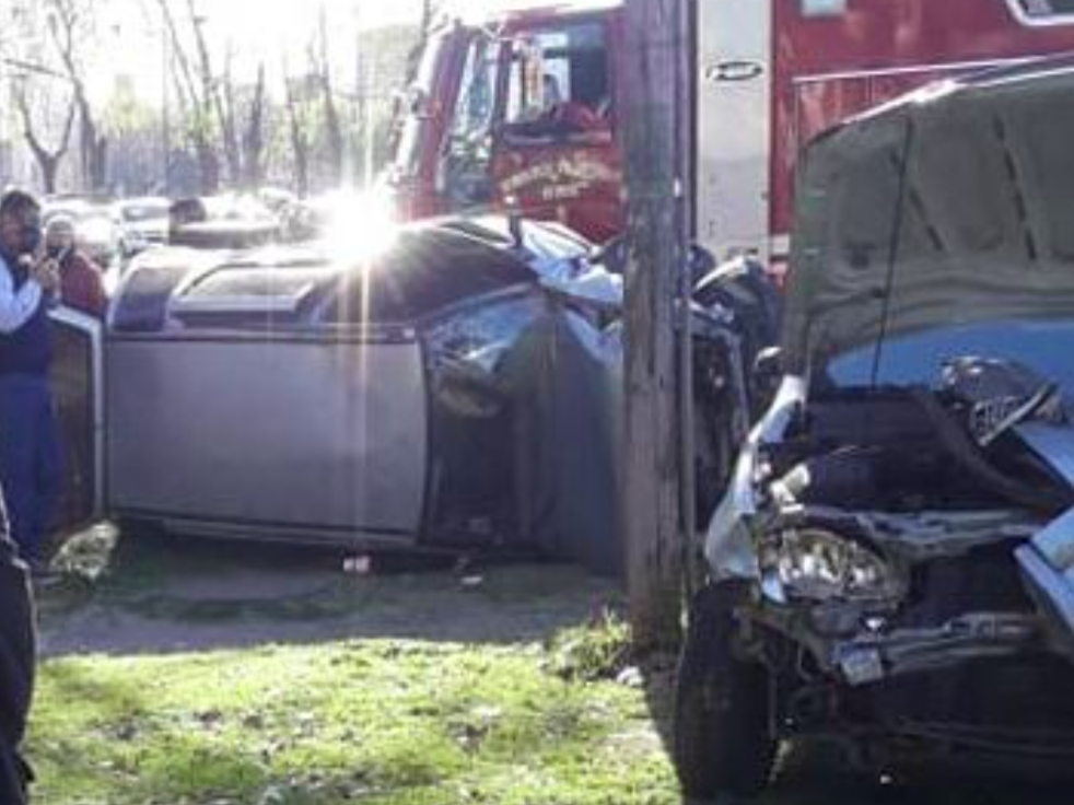 De los vehículos, que según testigos iban a gran velocidad, uno volcó y el otro terminó con roturas importantes en la parte delantera.
