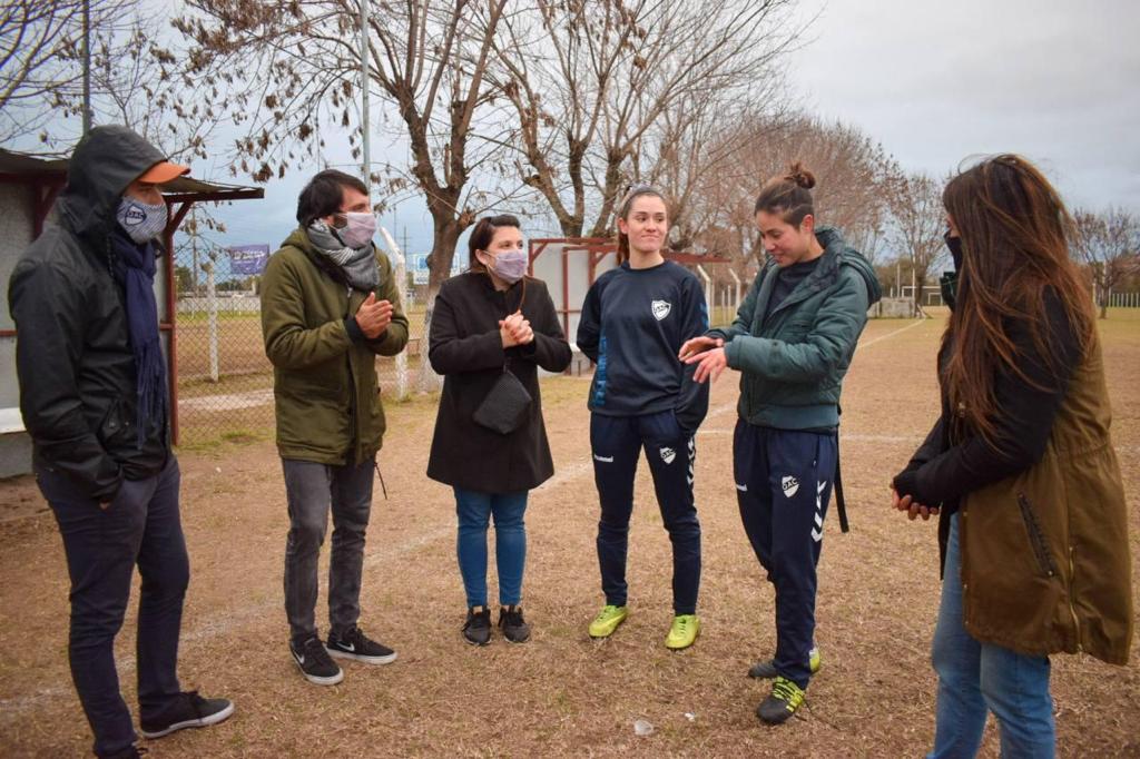 Al finalizar el encuentro, ambos funcionarios hicieron entrega de bolsones con material deportivo de entrenamiento, para ambos planteles, en el marco de un programa de apoyo para el desarrollo del fútbol femenino en la ciudad.