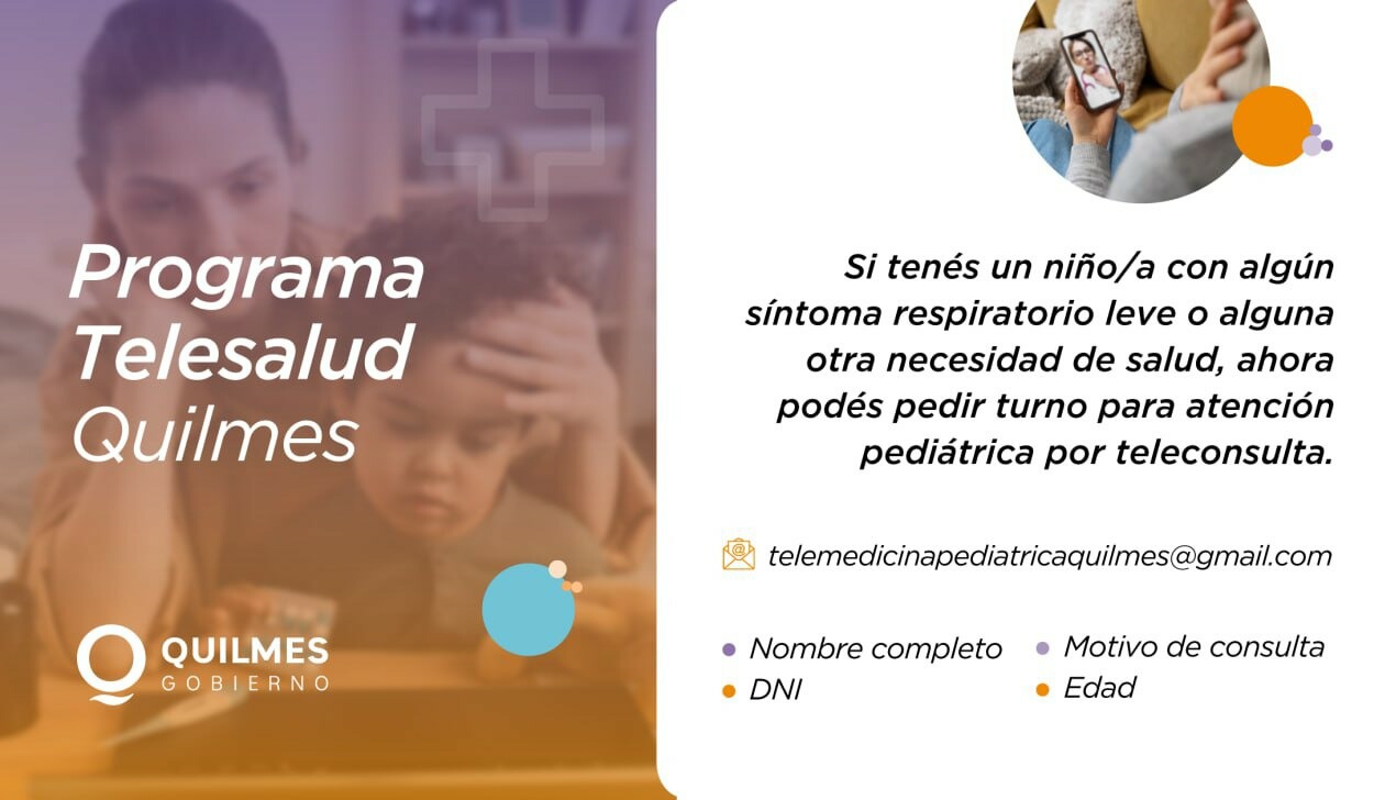 El Municipio lanzó el programa Telesalud Quilmes, una propuesta para brindar atención pediátrica virtual a través de una videollamada a todos los quilmeños que lo soliciten, donde los profesionales de la Secretaría de Salud responderán las inquietudes que tengan, o necesidades sanitarias.