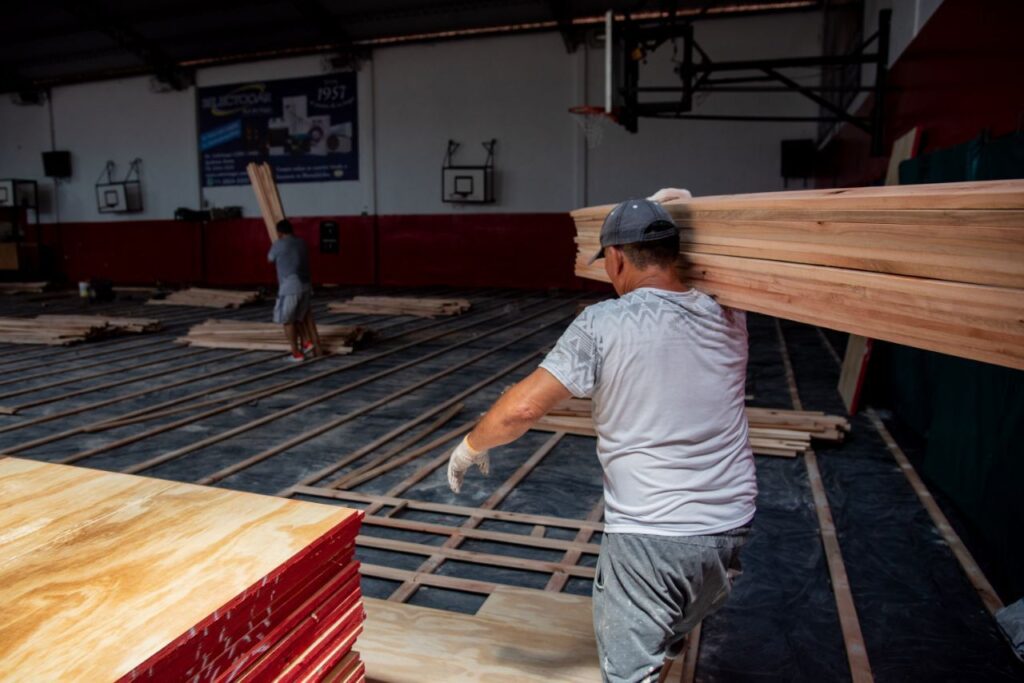 El Municipio de Quilmes continúa en la mejora de los clubes de barrio, a través del Programa de Fortalecimiento a Clubes de Barrio y Entidades de Bien Público. Esta vez, funcionarios municipales supervisaron los trabajos que se llevan adelante en el gimnasio del club Los Cooperarios, ubicado en Andrade 3056, donde se está renovando el piso de parquet.