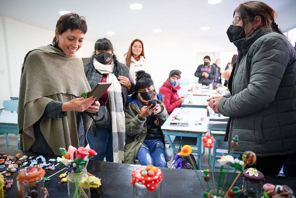 En la oportunidad, Mayra y Vilar recorrieron la exhibición de trabajos de promoción ambiental que se realizan en la Escuela, como huerta, vivero, compostaje, humedad artificial y 3R, y luego visitaron las aulas que llevan los nombres de las activistas ambientales Berta Cáceres, Otilia Martínez Cruz y Dilma Ferreira Silva, donde se dictaban los talleres de Porcelana y Eco Elementos, y de Huerta y Soberanía Alimentaria.