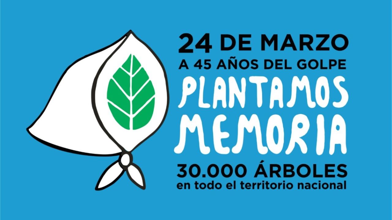 A 45 años del golpe genocida, los organismos de Derechos Humanos abajo firmantes convocan a instituciones y organizaciones de la sociedad civil, a sumarse a la campaña Plantamos Memoria: Este 24 de marzo, sembremos 30 mil árboles por nuestrxs 30 mil compañerxs detenidxs desaparecidoxs y por el futuro. Este es su comunicado: