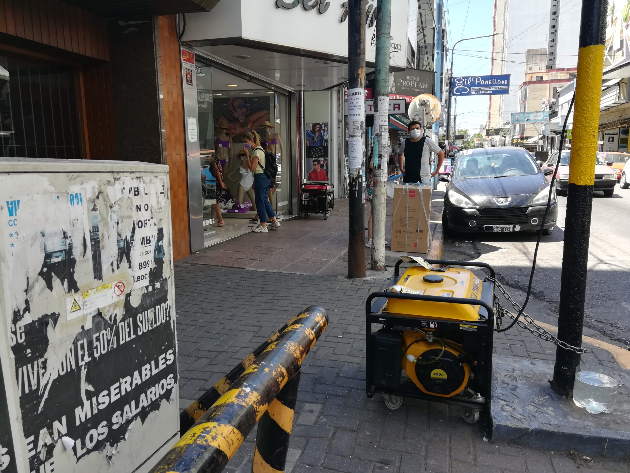 Es un paisaje que se repite cada verano: Los grupos electrógenos en comercios, oficinas y zonas de pago, que apestan de olor a combustible y aceite. Lo que faltaba para la contaminación ambiental y sonora. ¿Pero qué remedio queda para quien debe trabajar?