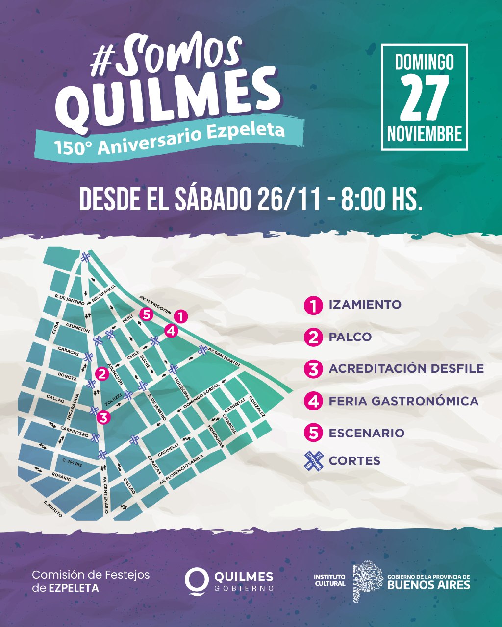 El Municipio informa que por el festival por el 150º aniversario de Ezpeleta, hasta su finalización el domingo 27, permanecerá cerrada al tránsito la avenida San Martín, entre Centenario y Florencio Varela.