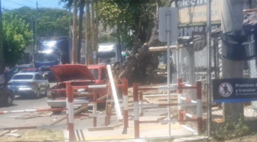Una camioneta cargada con maderas cruzó con las barreras bajas, el tren la arrastró varios metros, y se incrustó contra un árbol en la mano de enfrente. Sus dos ocupantes salieron ilesos.