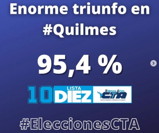 Desde la CTA Quilmes compartieron con este CIQ los resultados de las elecciones de la CTA de los Trabajadores, cuyos referentes nacional Hugo Yasky, y provincial, Roberto Baradel, se imponen en ambos niveles.