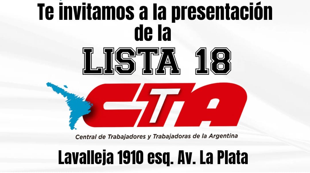 En la tarde de este jueves se presentará la Lista 18 que le disputará la conducción al actual oficialismo de la Central de Trabajadores Argentinos (CTA) de los Trabajadores. Esta es la lista que encabezan Emilia Martínez y Eva Ruiz Díaz.