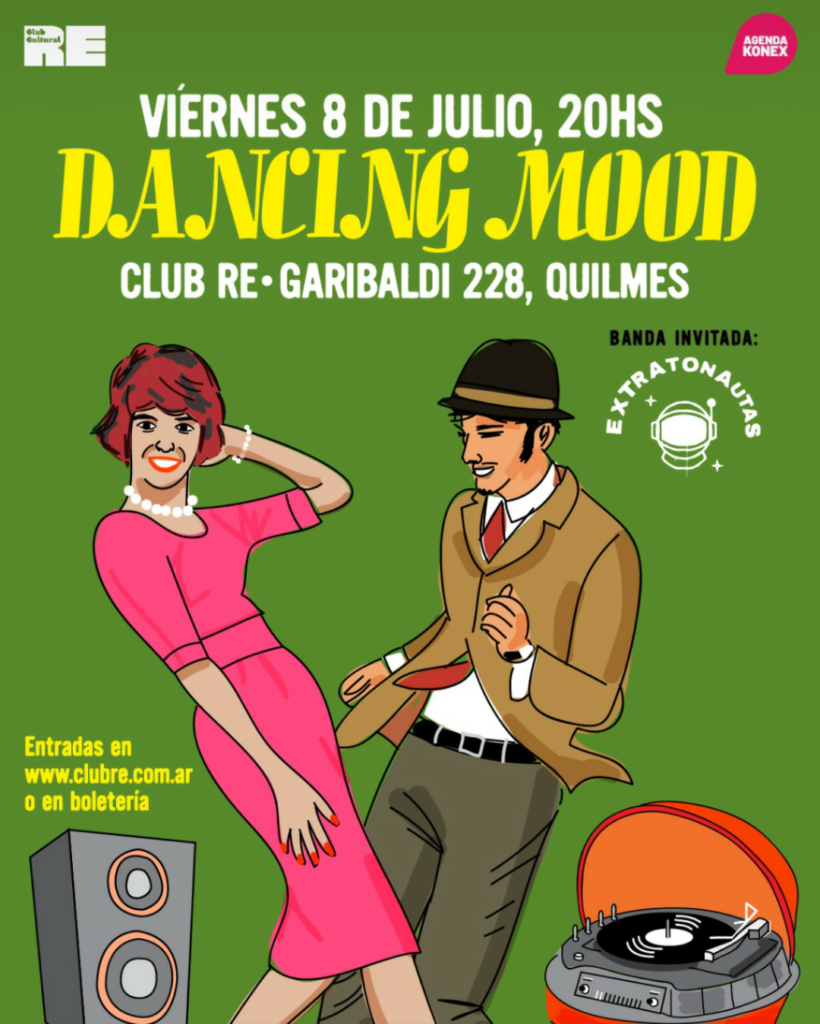 El viernes 8 de julio a las 20 horas, se presentará otra vez Dancing Mood, creada por el talentoso Hugo Lobo, músico de vasta experiencia que formó parte de Callejeros, Atraque 77, Mimi Maura, Intoxicados. Se caracteriza por interpretar versiones instrumentales de melodías clásicas al ritmo del Reggae, el Ska y del Calipso. Cada uno de los arreglos corre por cuenta de Hugo Lobo y, los pasajes instrumentales son una celebración que excede los géneros musicales. *Dancing Mood*, recibió el premio de la Fundacion Konex por ser una las cinco mejores bandas en la disciplina Instrumental Fusión, de la última década en Argentina.