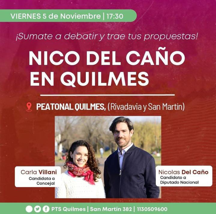 Mañana viernes a las 17.30, el primer candidato a diputado nacional del Frente de Izquierda y de los Trabajadores Unidad (FIT-U), Nicolás Del Caño, recorrerá el centro quilmeño para difundir sus propuestas de campaña.