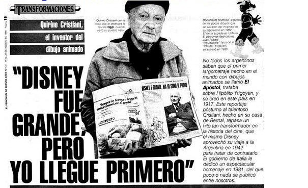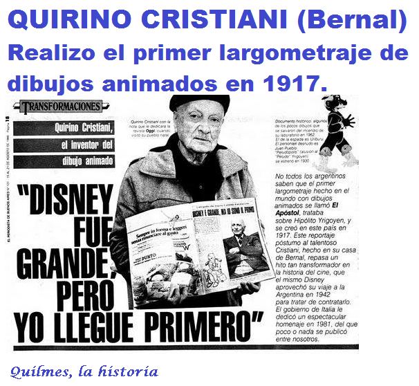 Quirino Cristiani, vecino de Bernal, fue un caricaturista y director de animación italiano nacionalizado argentino responsable de los dos primeros largometrajes de animación y del primer largometraje de animación sonoro del mundo.