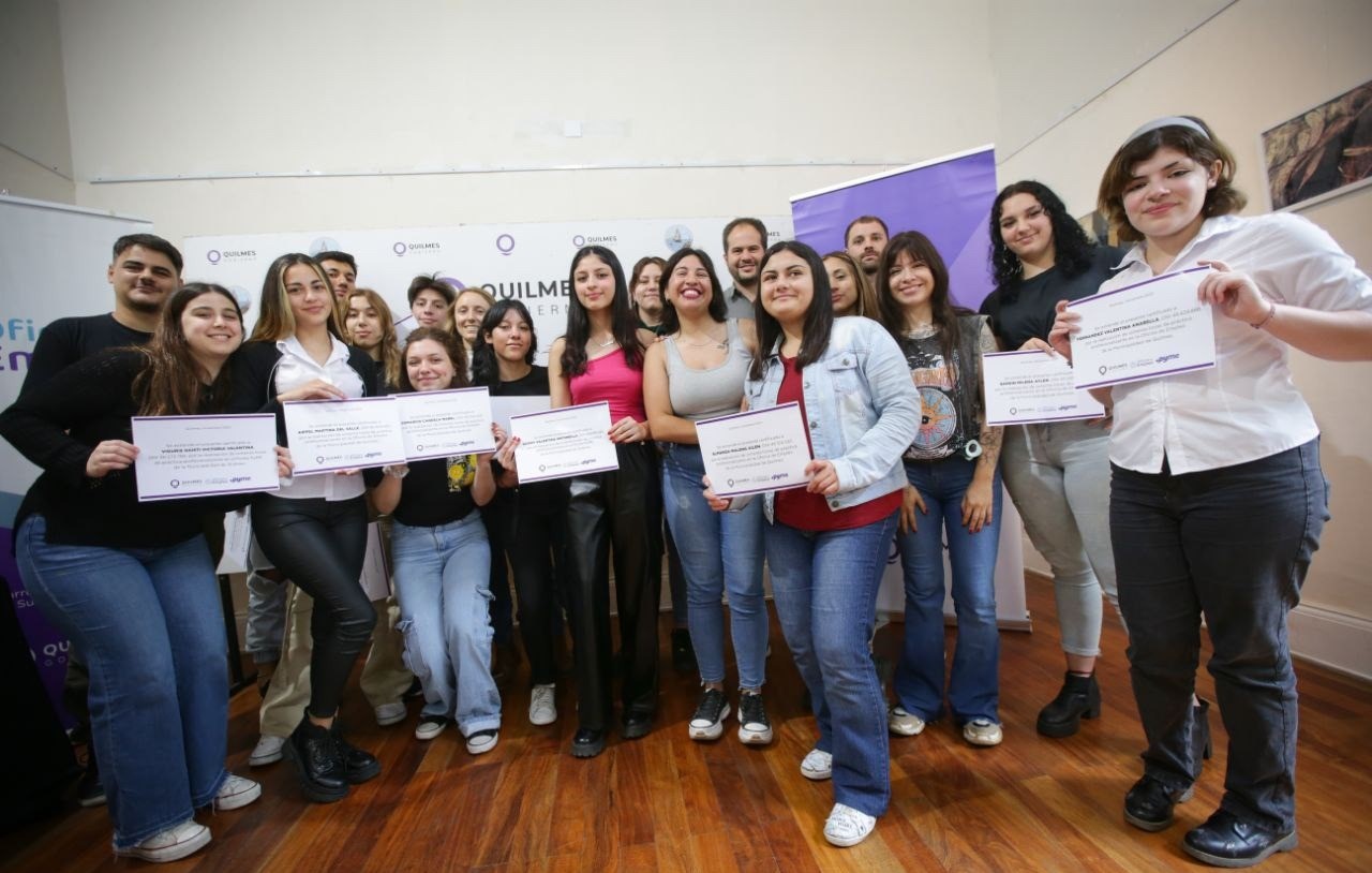 El Municipio informa que este miércoles se realizó el acto de entrega de diplomas a 14 estudiantes de la Escuela de Educación Superior Técnica (EEST) 5 Reino de España, de Quilmes Centro, quienes hicieron distintas prácticas profesionalizantes en el Centro Municipal de Producción y Empleo, en dependencias dentro de la Oficina de Empleo comunal y en el Punto Pyme, para adquirir nuevas herramientas y sumar experiencias en la construcción de su futuro laboral.