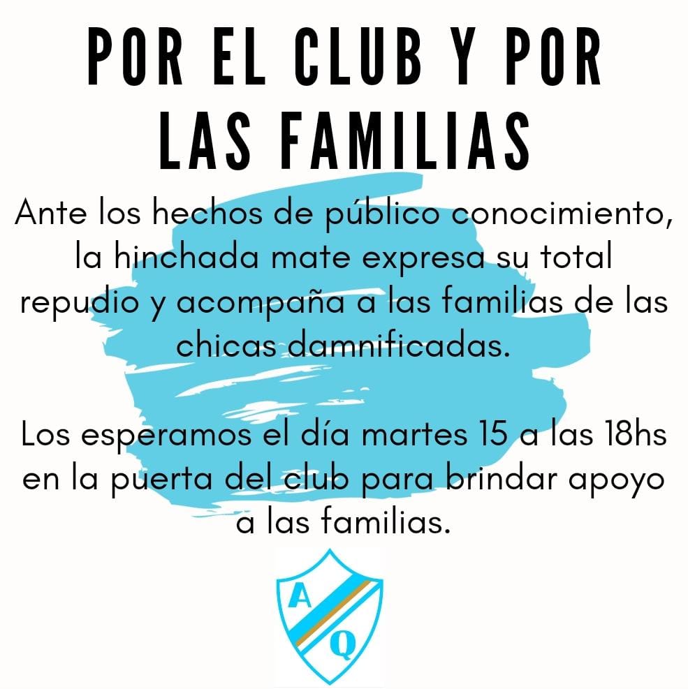 “Desde la Comisión Directiva y Subcomisión de Fútbol Femenino de Argentino de Quilmes, hemos recibido acusaciones con pruebas”, se consignó en el twitter oficial de la entidad; al tiempo que identificaron a los acusados Omar y Diego Giménez (DT de la Sub-16 y Sub-14) y plantearon que “han acosado mediante mensajes de texto a jugadoras de nuestra institución”.
