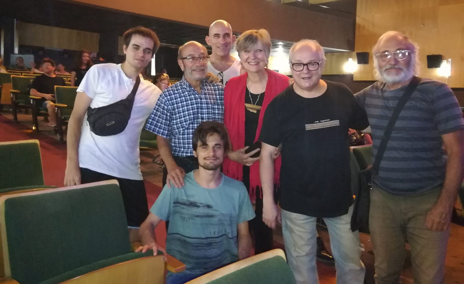 Desde el escenario, Pedro Conde mencionó la presencia de su amigo Jorge Durietz (ex Pedro y Pablo) quien vino desde San Fernando para acompañar la puesta. Ya desde temprano estuvieron sentados en primera fila, donde recibieron el saludo de Lacarra y se juntaron con la locutora oficial Cristina Oller para esta foto con el director de este medio:
