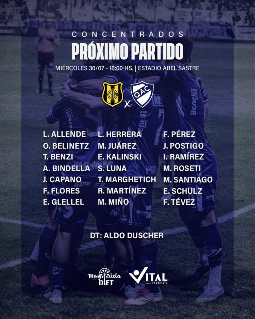 El resto de los concentrados son el golero Lautaro Herrera, Leandro Allende, Enzo Kalinski, Sebastián Luna, Joaquín Postigo, Thiago Marghetich, Martínez, Mariano Miño, Juan Capano y Edwin Shulz. De estos, salvo el guardametas, uno quedará fuera del banco siempre y cuando Ramírez no tenga complicaciones con el corte en su ceja ocurrido ante el Tricolor en el último partido. En tal caso, lo más probable es que el juvenil Luna quede afuera de la planilla oficial. Si lo del ex-Belgrano se complica, será el experimentado mediocampista quien quede afuera del partido.