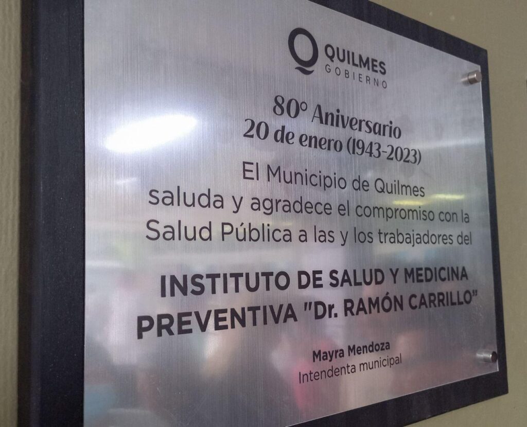Este viernes, el Instituto Municipal de Salud y Medicina Preventiva Ramón Carrillo (ex Dispensario), ubicado en Islas Malvinas 801 esquina Marcelo T. de Alvear, en Quilmes Oeste, celebró el 80º aniversario de su creación, que ocurrió un 20 de enero de 1943, en sus inicios como Sala de Primeros Auxilios y Dispensario Infantil.