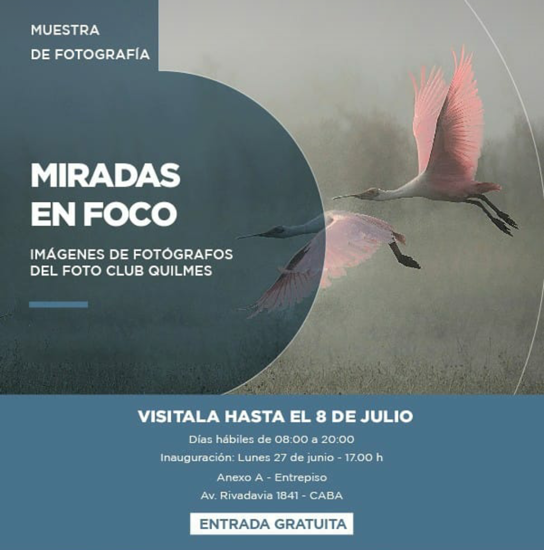 Miradas en foco está compuesta por un conjunto de 20 imágenes de 20 fotógrafas y fotógrafos del Club. La muestra propone un recorrido sobre el intercambio de perspectivas respecto del ser humano y su contexto, articuladas en espacios geográficos distintos en el que cada autor y autora presenta la suya sobre un mundo colectivo y diverso.