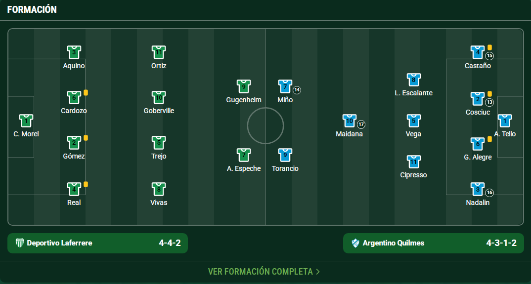 En el complemento, Argentino de Quilmes, sin ser una máquina, fue el que mejor intentó para llevarse los tres puntos. Primero, con un remate rasante desde ¾ de cancha de Castaño que besó el palo izquierdo de Morel. Por su parte, Laferrere recién tuvo una situación de peligro con el ingreso por derecha tras un quedo en el fondo criollo. El remate fue contenido por Alejo Tello, quien dio rebote y se quedó con la pelota en segunda instancia cuando arremetía Carlos Gugenheim. Sin embargo y más allá de la localía, el Verde jamás igualó a Argentino de Quilmes en cuanto a las posibilidades de gol. La ruptura de la defensa a espalda de sus integrantes fue una de las armas del equipo quilmeño. Corrió Maidana, Torancio rompió línea y cuando remató, la pelota dio en la parte externa de la red. Al Criollo le faltó puntería en La Matanza. Porque tuvo otro tiro libre que se fue desviado ante la mirada de Morel. Y cuando lo necesitó, estuvo Alejo Tello en el fondo para descolgar un centro del ángulo y salvar la valla mate.